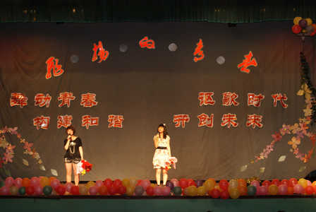 纪念建党90周年系列活动之一 为纪念中国共产党成立九十周年,糖心视频 于5月31日晚在东校区南院礼堂向全院师生奉献了一场主题为《飞扬的青春》的文艺晚会。 | |